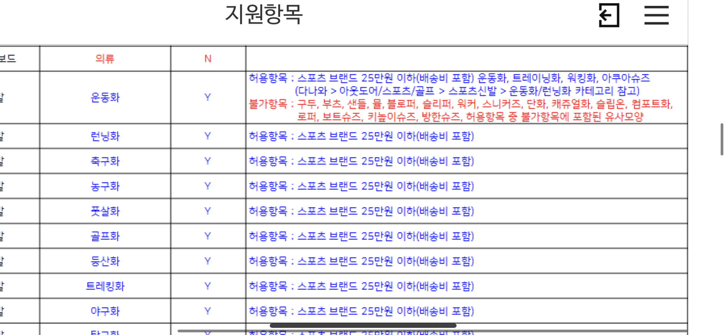 구두, 부츠, 샌들, 단화, 캐쥬얼화 등등은 불가능하다고 적혀 있지만, 다나와 기준으로 뉴발란스993, 나이키 에어포스는아웃도어/스포츠/골프 > 스포츠신발 > 운동화/런닝화 입니다. 가능할것으로 보입니다!