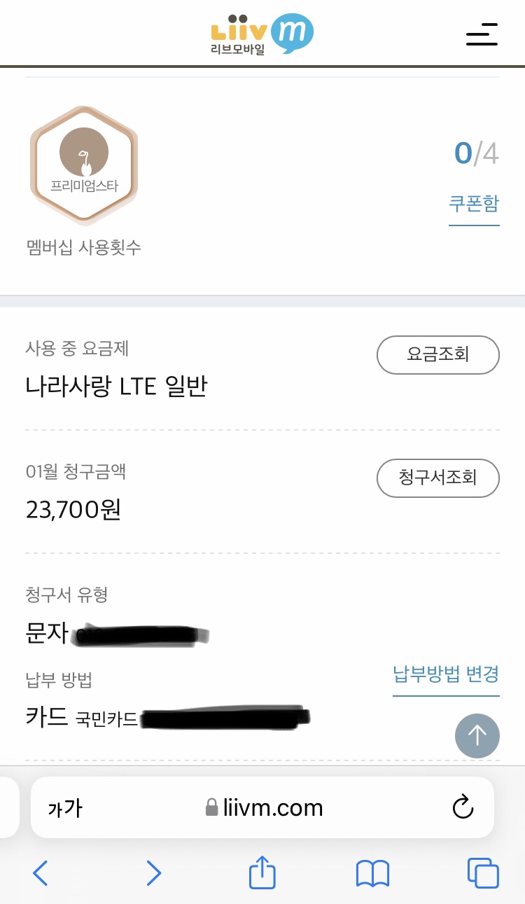 리브엠2(LiivM2) 카드로 리브엠 요금제 할인받기 (납부방법 변경)